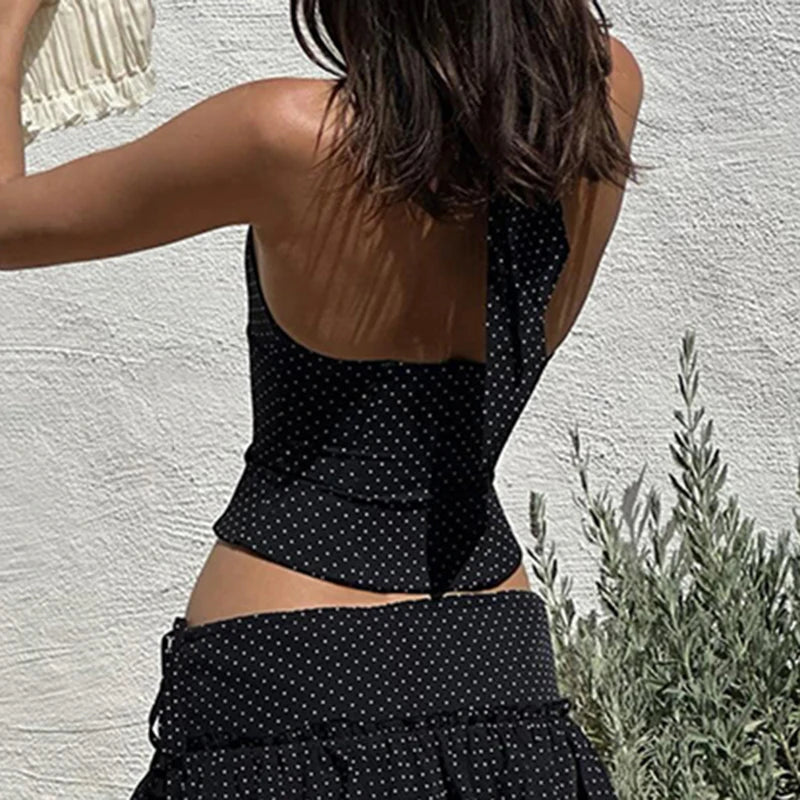 Hign-concerned Chemical : None Season : Summer Style : vintage Pattern Type : Polka dot Clothing Length : short(4-16inch) Tops Type : Tank Tops Fabric Type : Broadcloth Material : Polyester,Spandex Gender : Women Item Type : Tops Elasticity : Medium Strecth