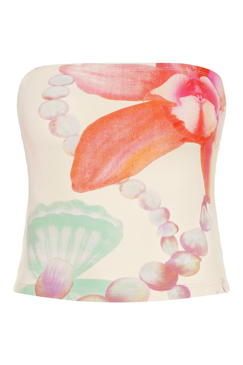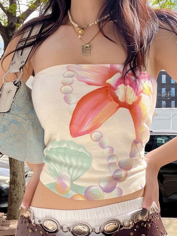 Increase quantity for Bandeau Shell Pearl Print Slim Crop Top