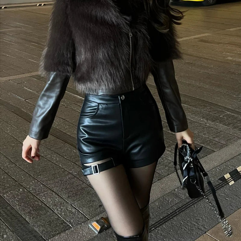 Season : Spring/Summer Fabric Type : blended Pant Style : regular Fit Type : Regulai Fit Waist Type : high Pattern Type : Solid Style : Gothic Material : PU Gender : Women Item Type : shorts