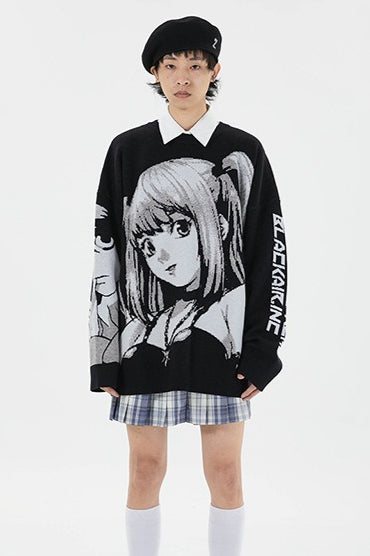 Increase quantity for Black Streetwear Relaxed-Fit Knit Sweater