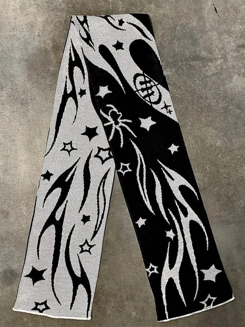 Decrease quantity for Black Tassel Star Striped Warm Knit Scarf