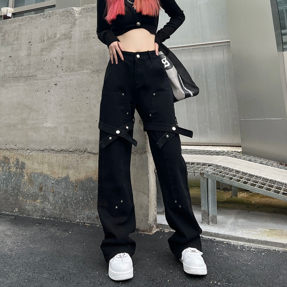 Black Utility Belt Cargo Pants