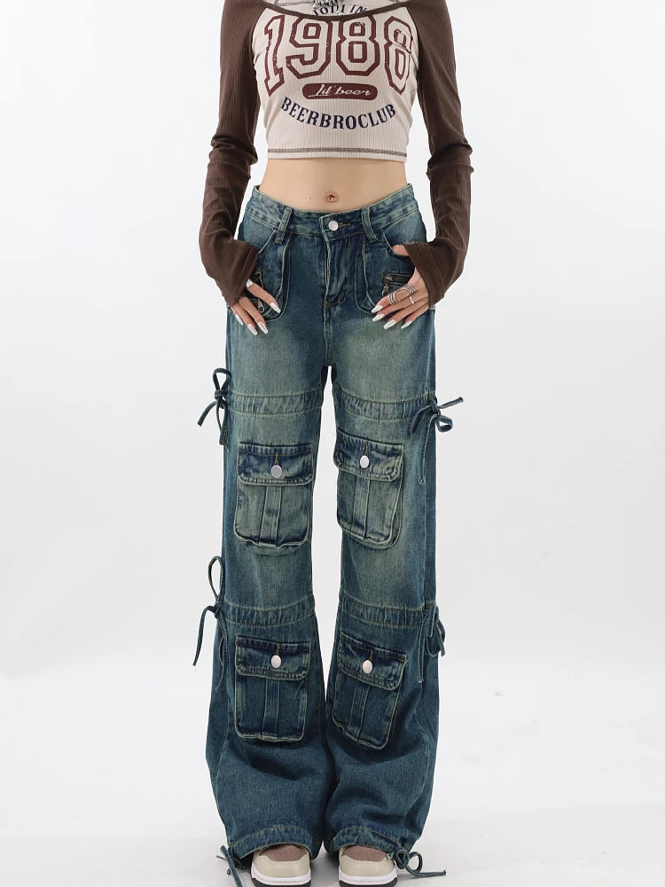 Blue Gothic Y2K Cargo Wide-Leg Pant