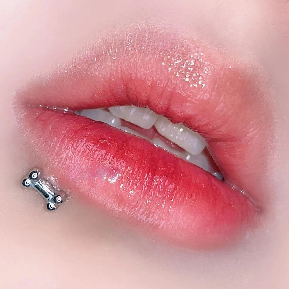 Bone Shape Simple Silver Stainless Steel Lip Stud