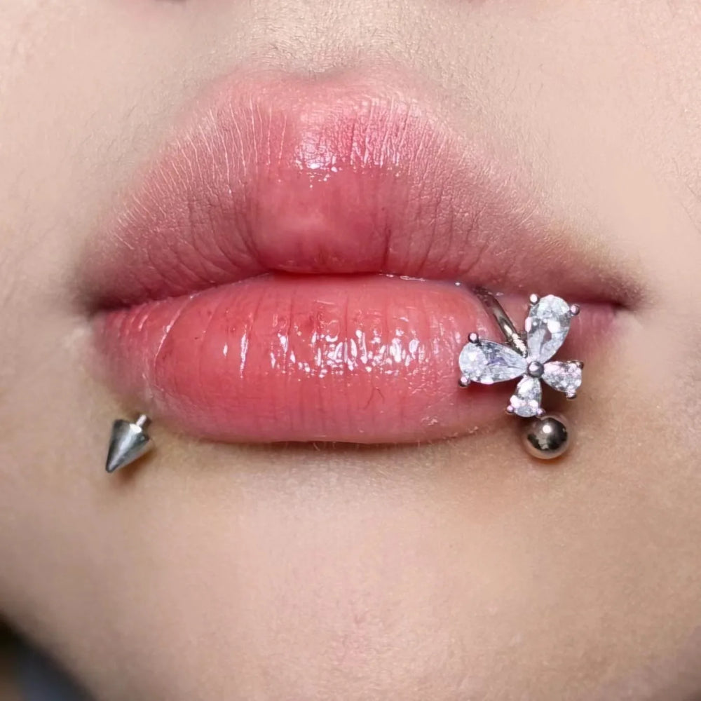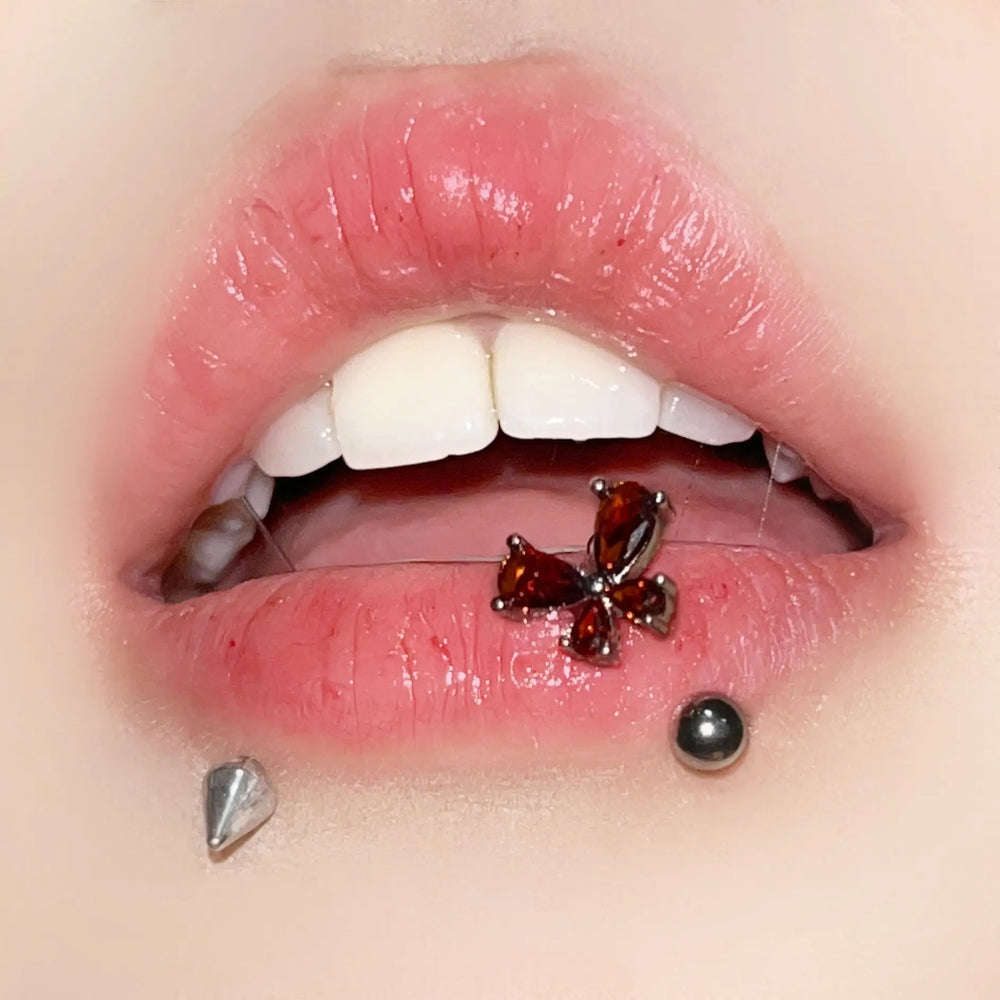 C Shape Crystal Butterfly Stainless Steel Lip Stud
