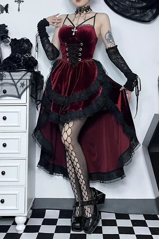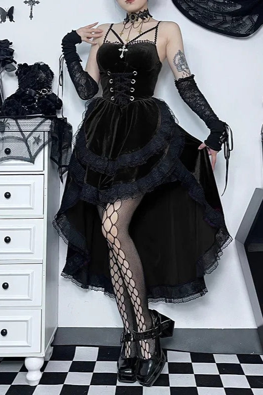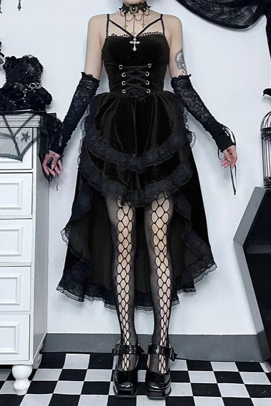 Increase quantity for Dark Gothic Lace Strap Swallow Tail Corset Midi Dress