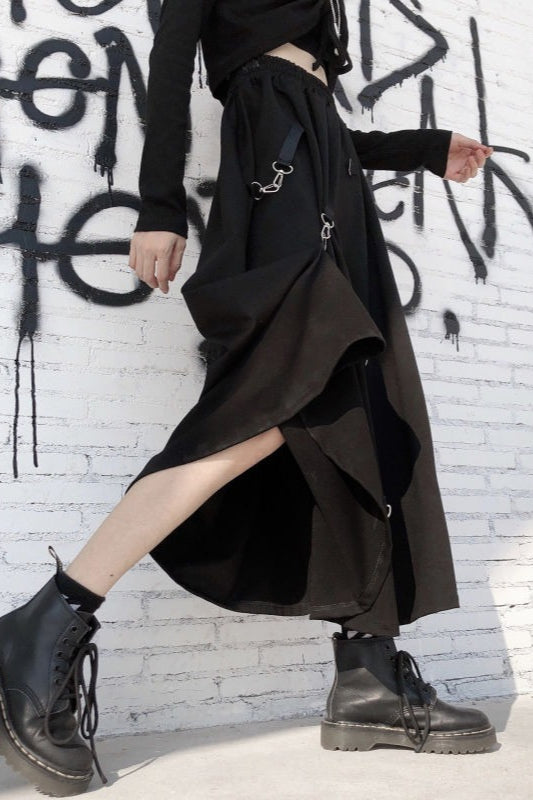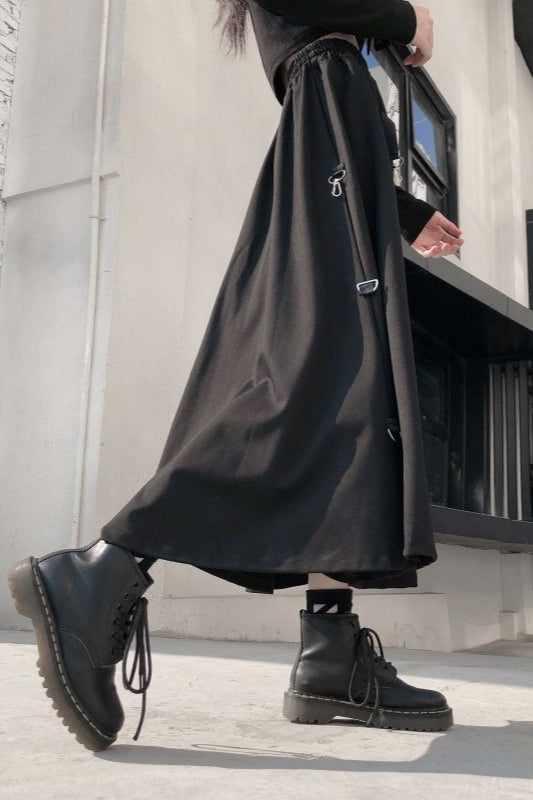 Increase quantity for Dark Japanese Street Buckle Midi A-Line Skirt