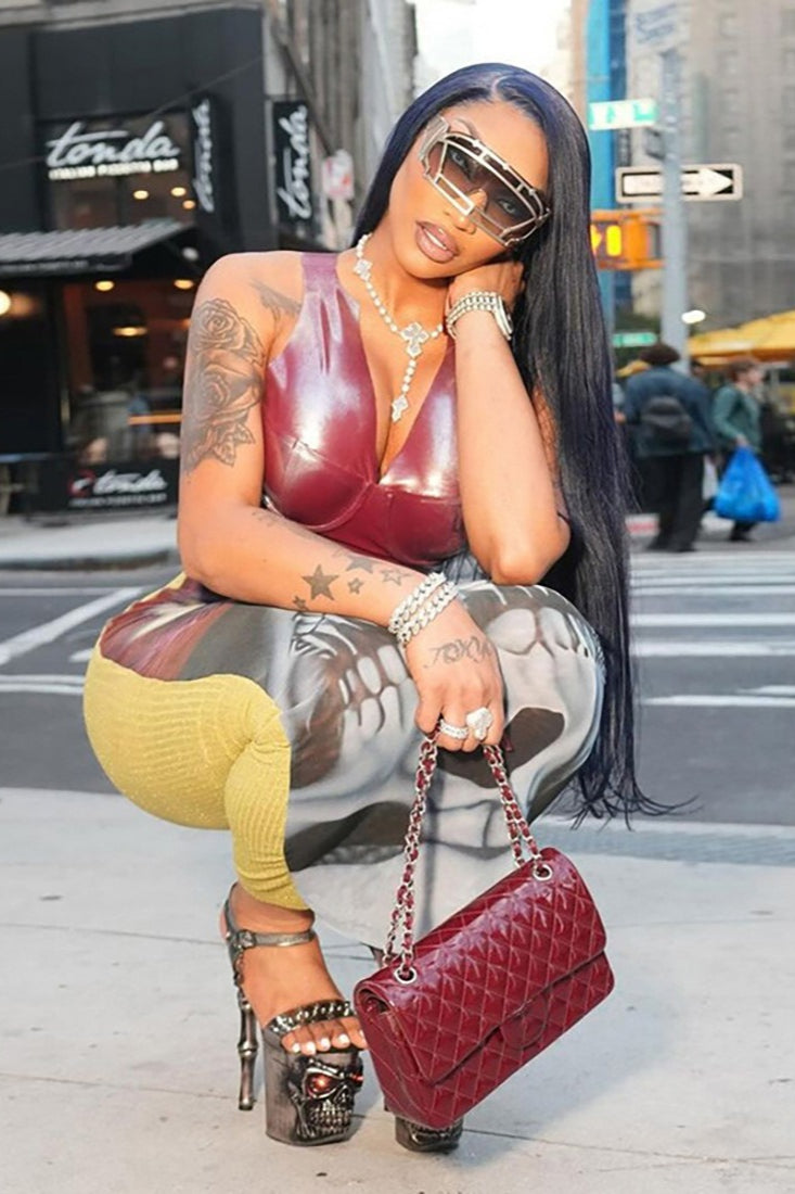 Increase quantity for Edgy Mesh Printed High-Waist Bodycon Maxi Skirt