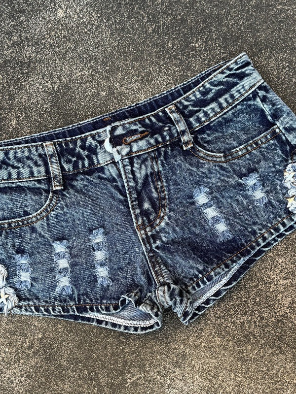 Increase quantity for Edgy Vintage Rivet Split Denim Shorts
