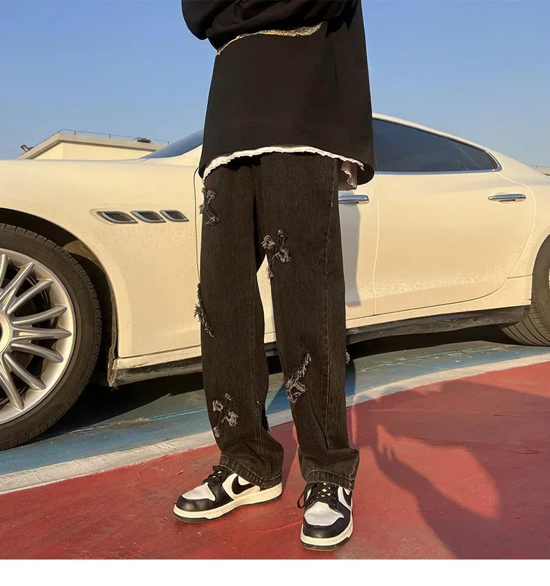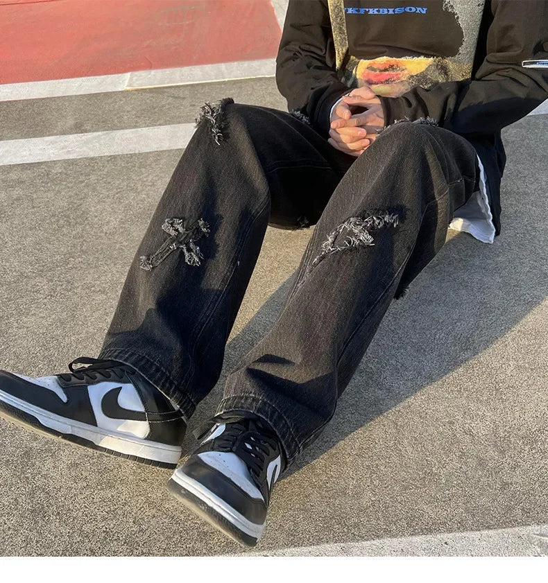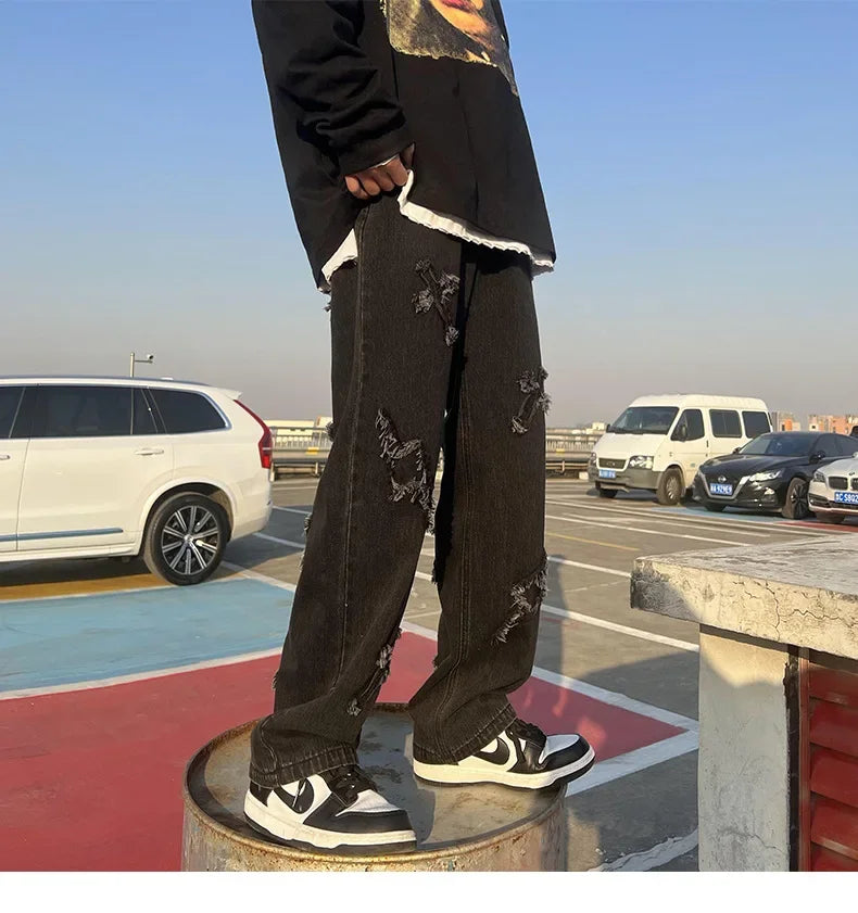 • Closure Type: Elastic Waist • Waist Type: High • Length: Full Length • Jeans Style: Straight • Fit Type: Regular • Material: Polyester Size Length Waist Hips Thigh Inch CM Inch CM Inch CM Inch CM S 41 104 28 70 39 98...