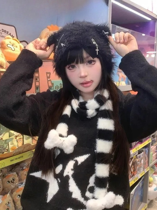 Fluffy Bear Ear Gothic Lolita Y2K Winter Warm Hat