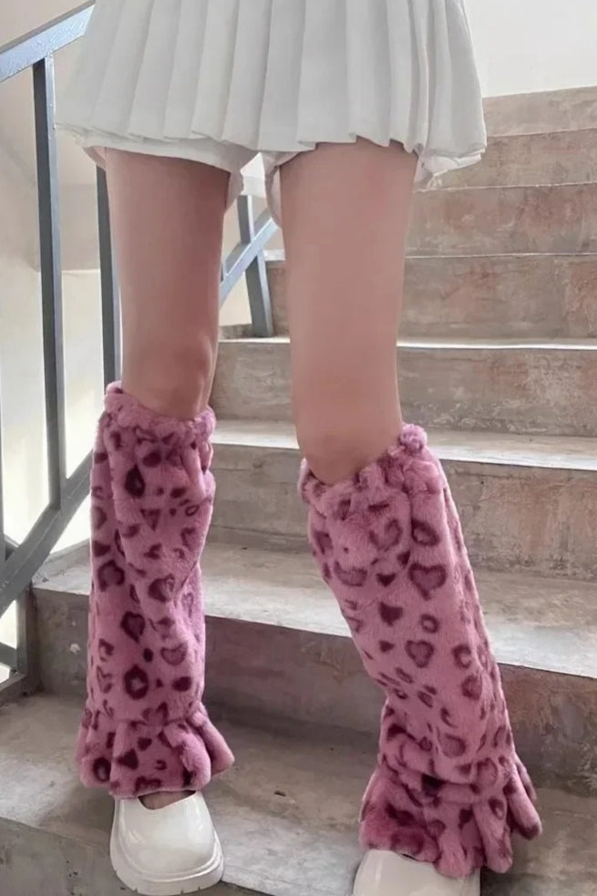 Goth Y2K Pink Leopard Print Ruffled Socks