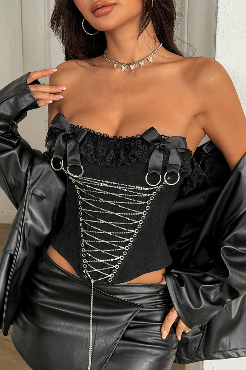 Gothic Chain Detail Cross Front Corset