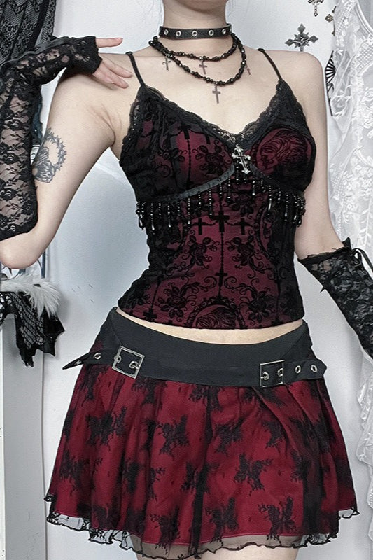 Gothic Cross Flocked Cami