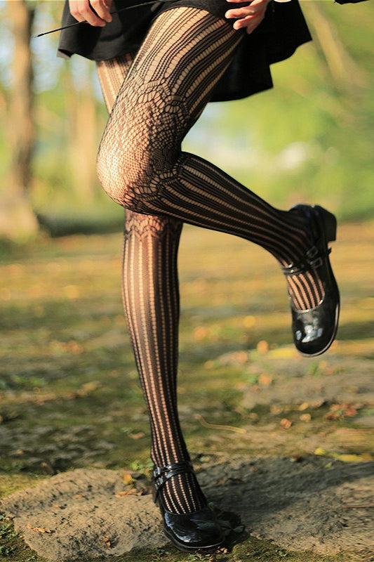 Gothic Lace Vertical Stripe Fishnet Socks