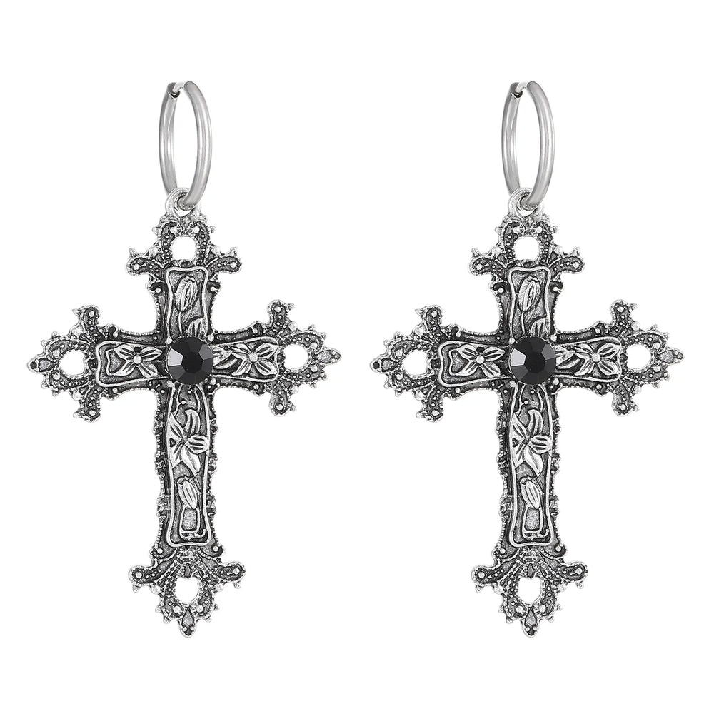 Gothic Large Silver Cross Wedding Drop Earring