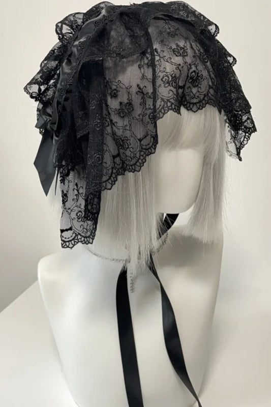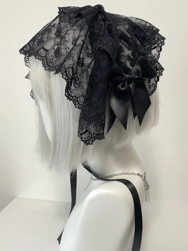 Gothic Lolita Maid Black Lace Bow Veil Hat