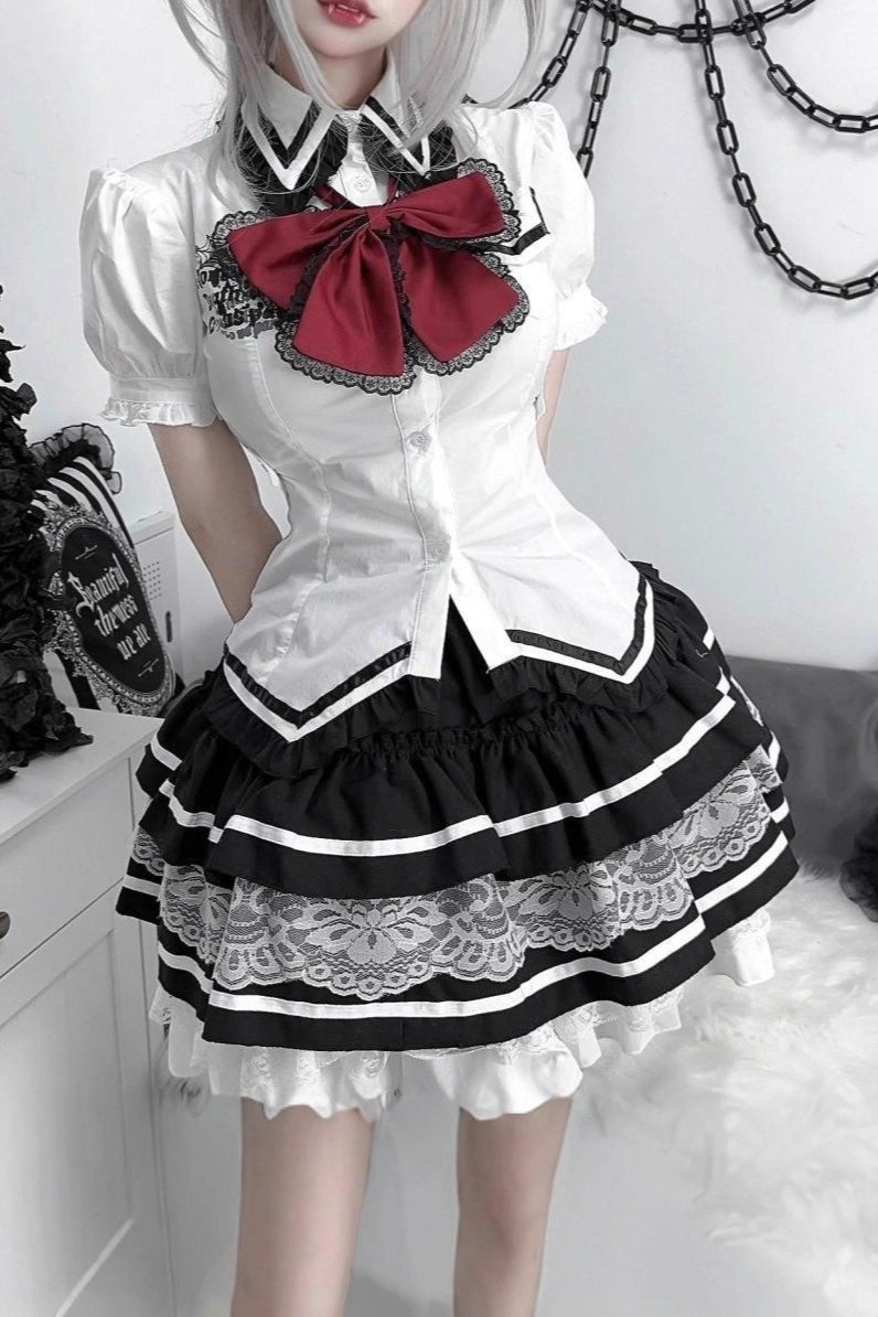 Decrease quantity for Gothic Punk Black White Slim Fit Skirt