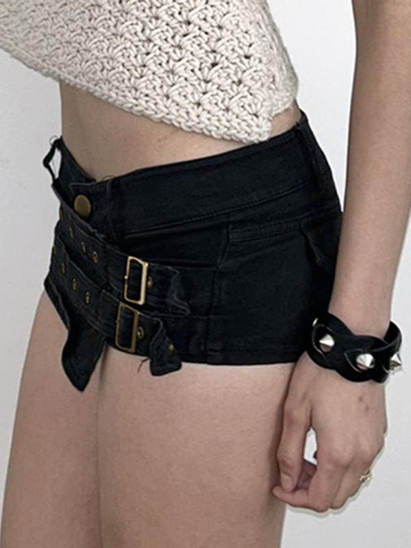 Gothic Punk Buckle Low-Rise Hot Shorts