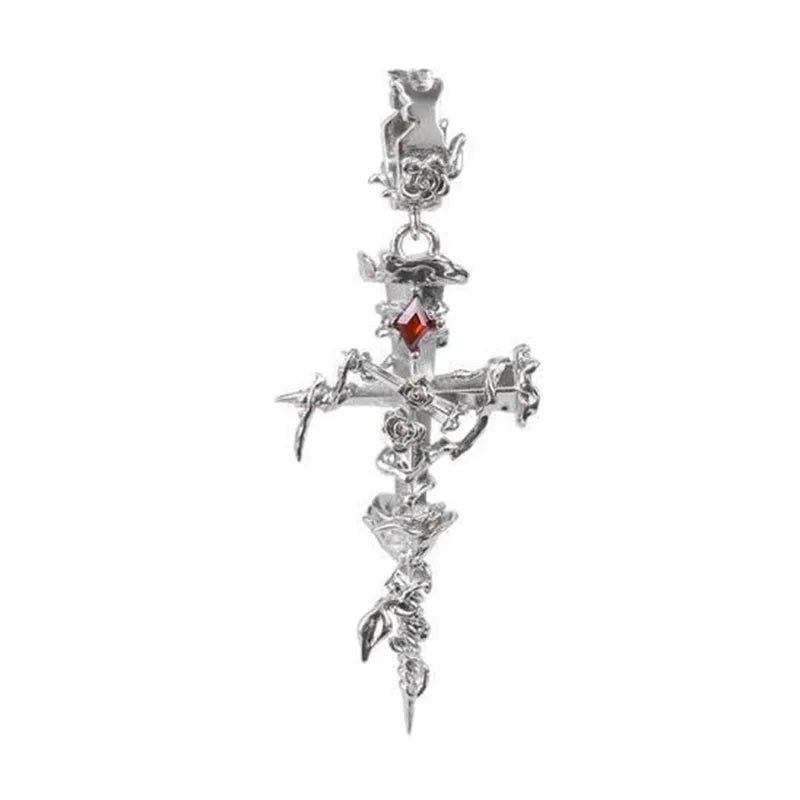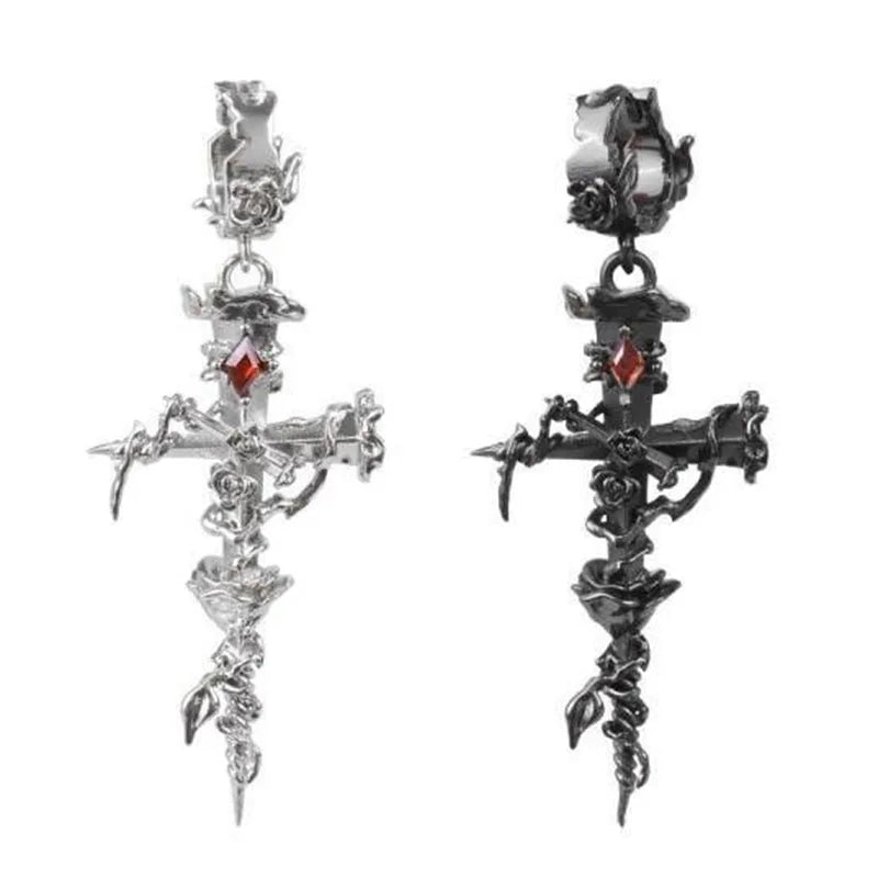 Gothic Red Crystal Lava Heart Pendant Earring