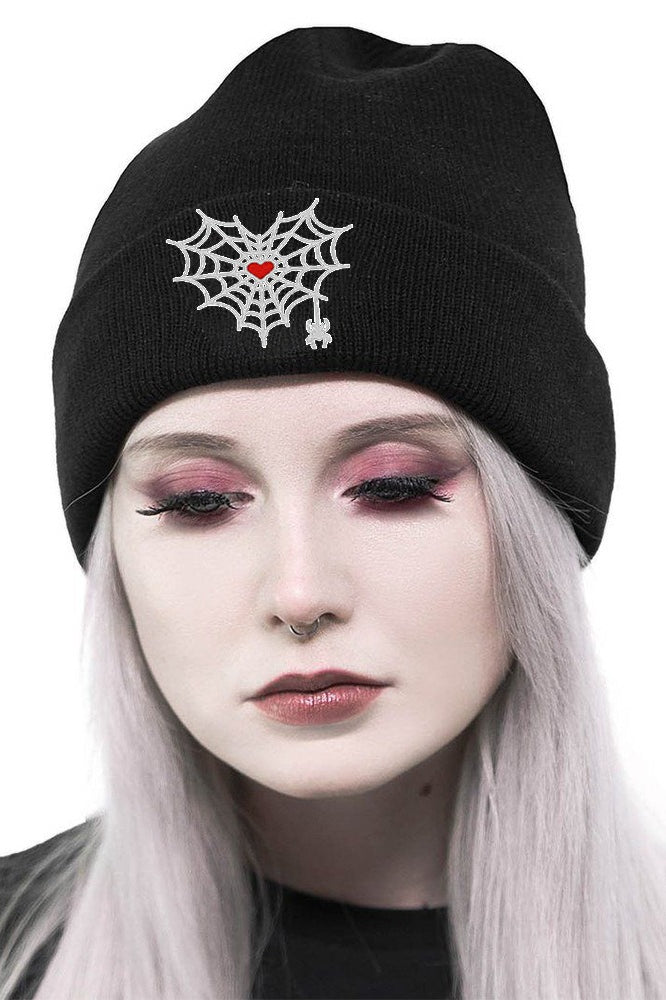 Gothic Spider Web Heart Knit Hat