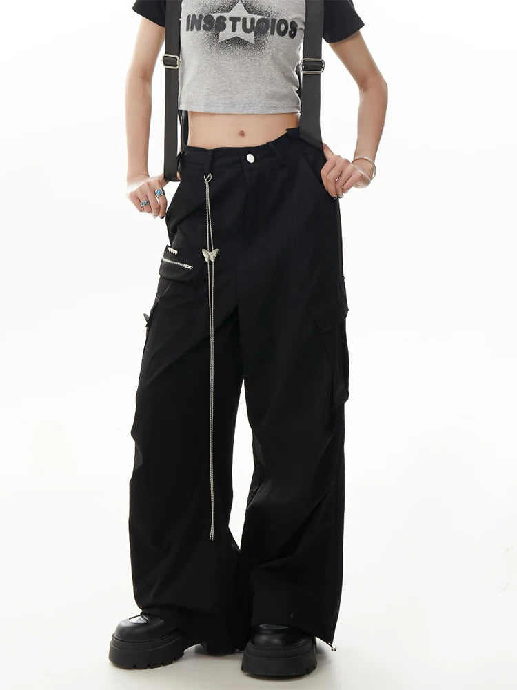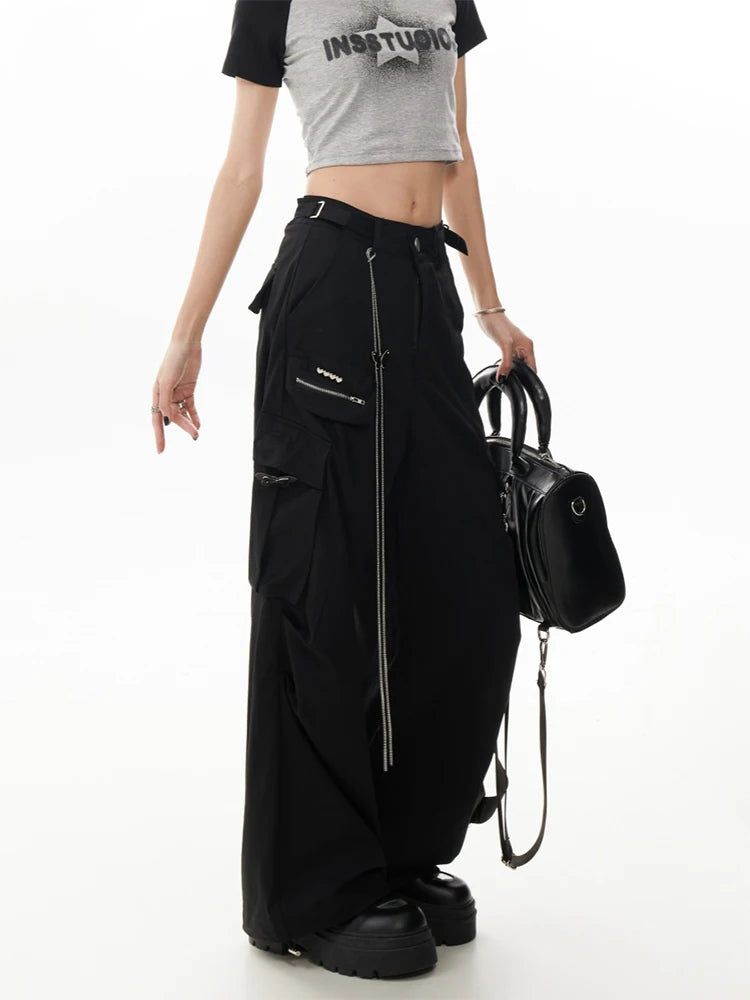 Grey Gothic Y2K Cargo Parachute Pant