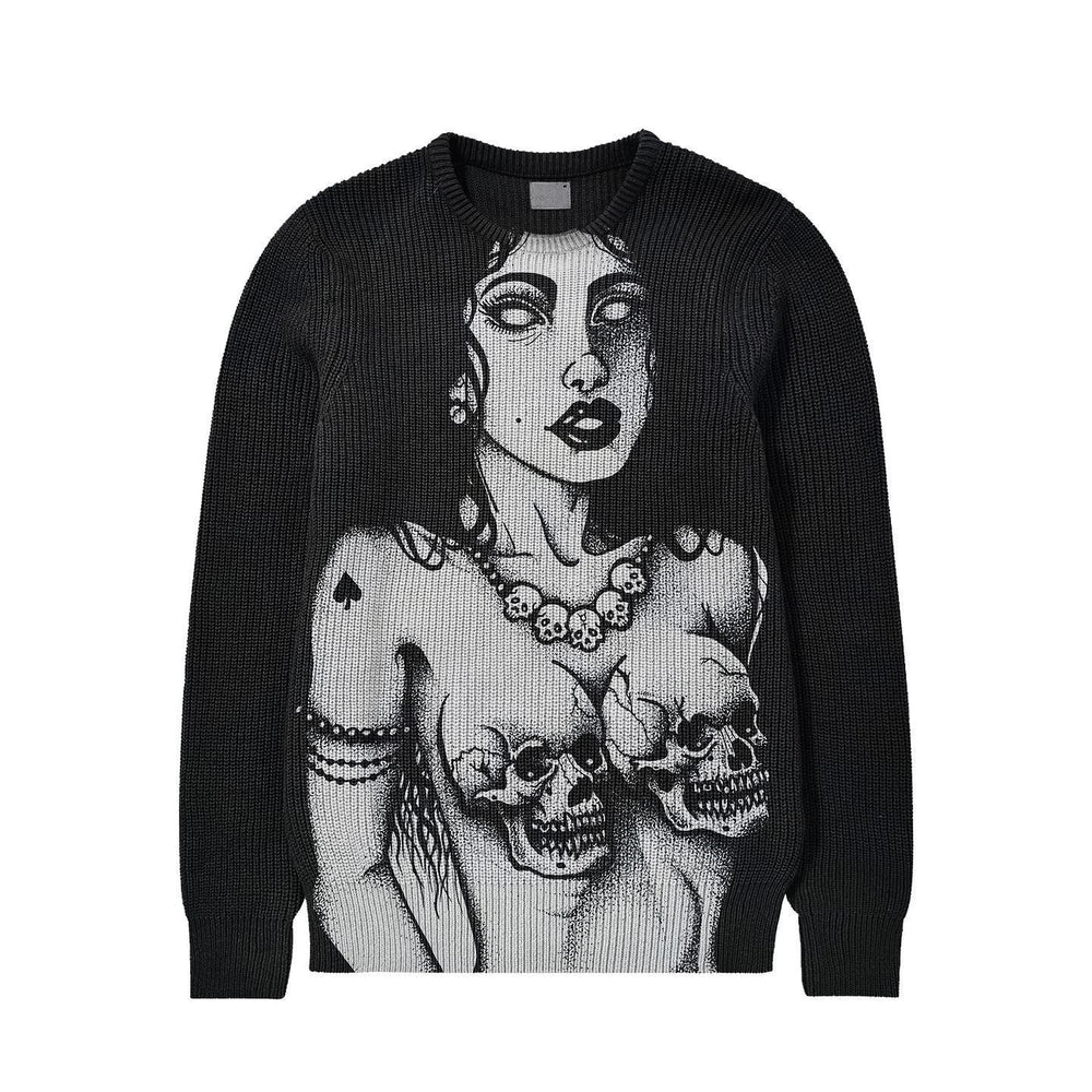 Grunge Cross Printed Crewneck Loose-Fit Knit Sweater