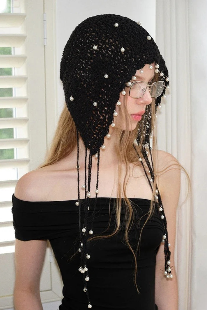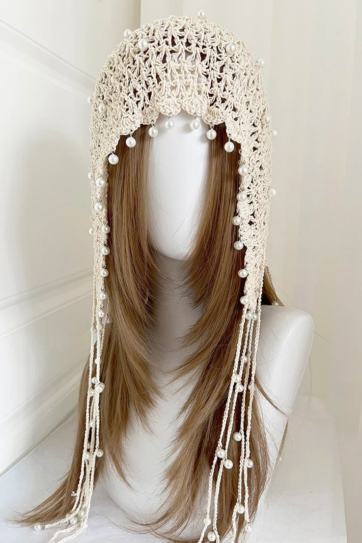 Handmade Pearl Tassel Y2K Crochet Woven Beanie Hat