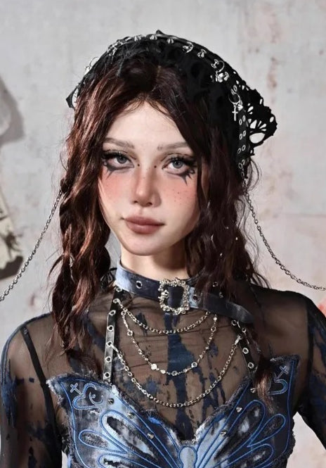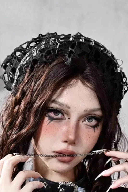 Harajuku Gothic Y2K Rivet Chain Butterfly Decorative Hat