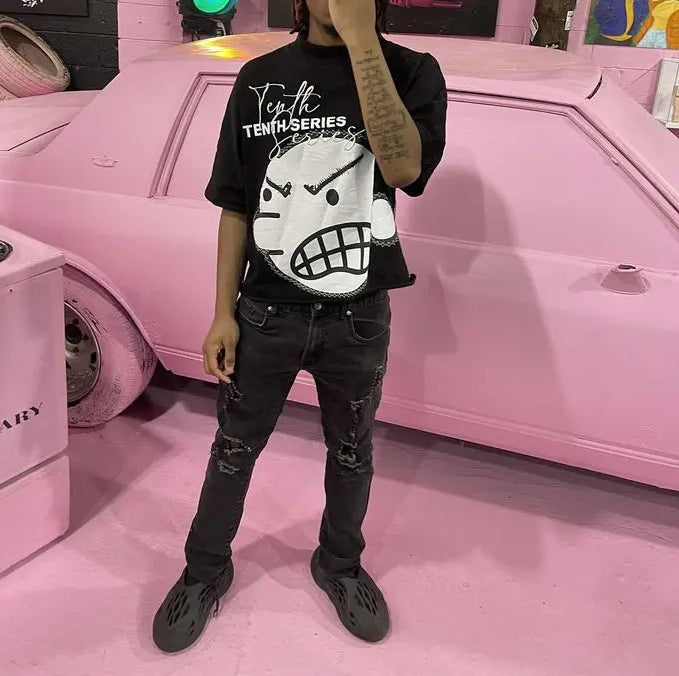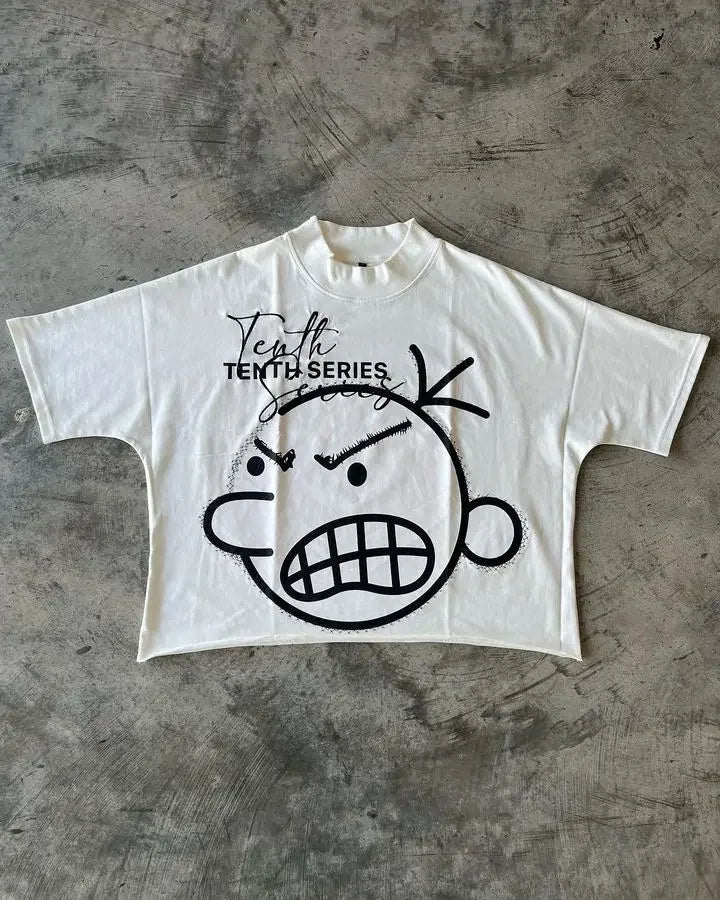 Hip Hop Cartoon Graphic Embroidery Oversized T-shirt
