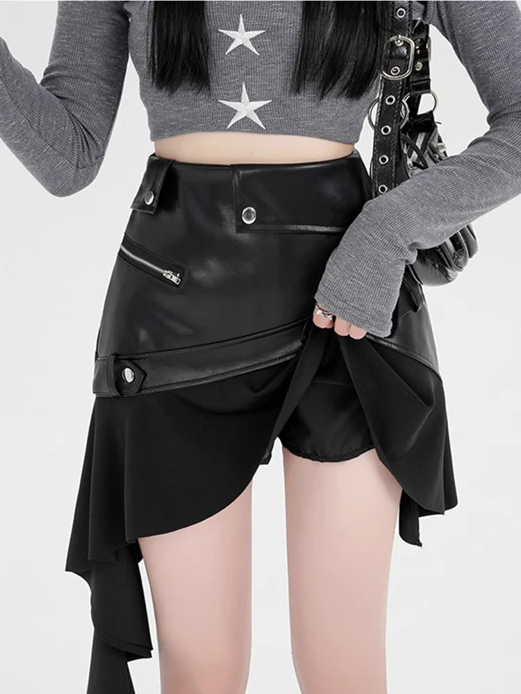 Irregular PU Leather Ruffle Skirt