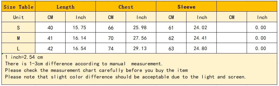 • Gender: Women • Material: Polyester • Origin: Mainland China • CN: Guangdong TOP Bust Shoulder Length Inch CM Inch CM Inch CM S 37-39 95-100 13-15 32-38 24 60 M 39-41 100-105 13-16 34-40 24 61 L 41-43 105-110 14-17 36-42 24 62...
