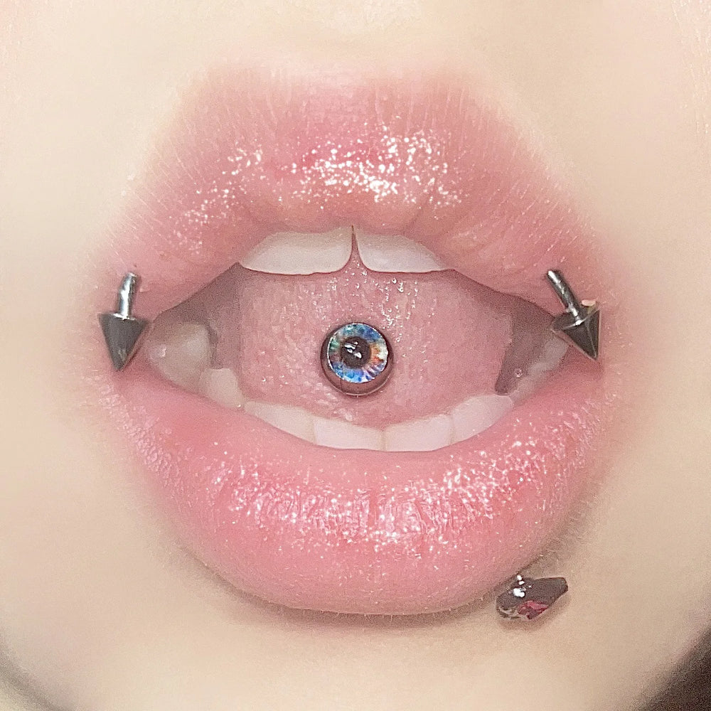 Magic Pupil Glued Eye Stainless Steel Tongue Ring
