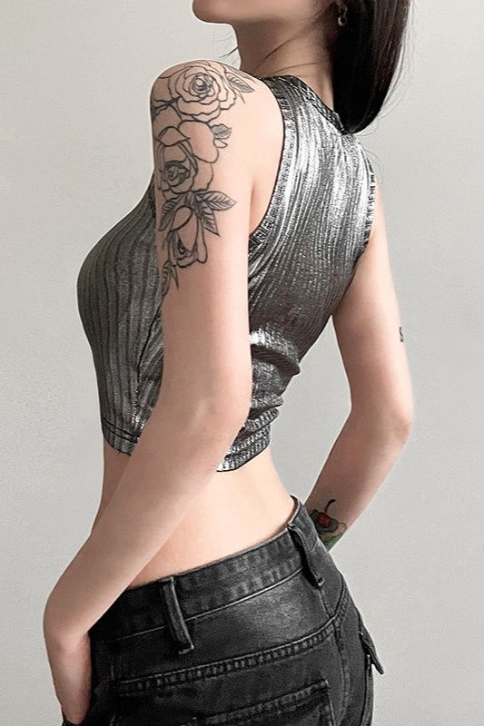 Metallic Vertical Stripe Slim Fit Crop Crop Top