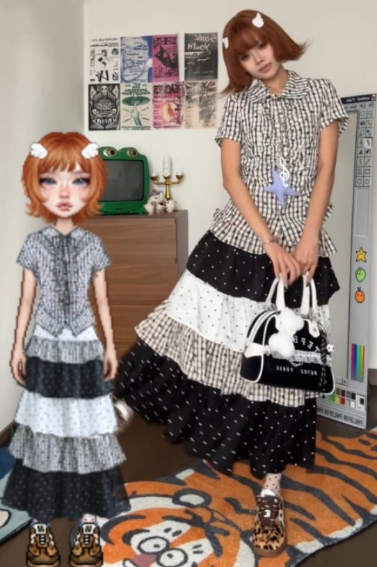 Increase quantity for Niche Alt Y2K Plaid Patchwork Maxi Skirt