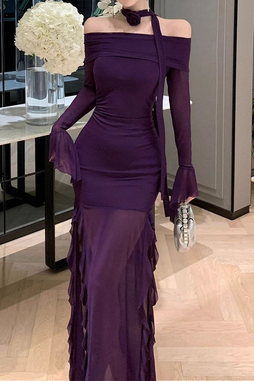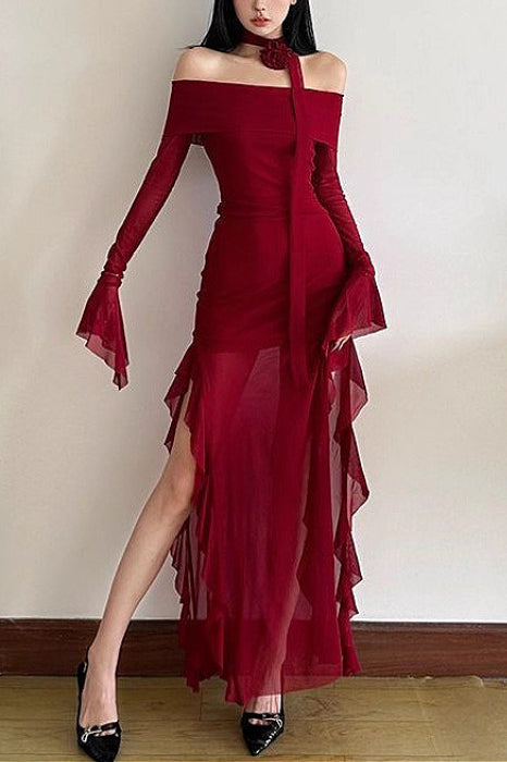 Off Shoulder Irregular Flare Sleeve Maxi Dress