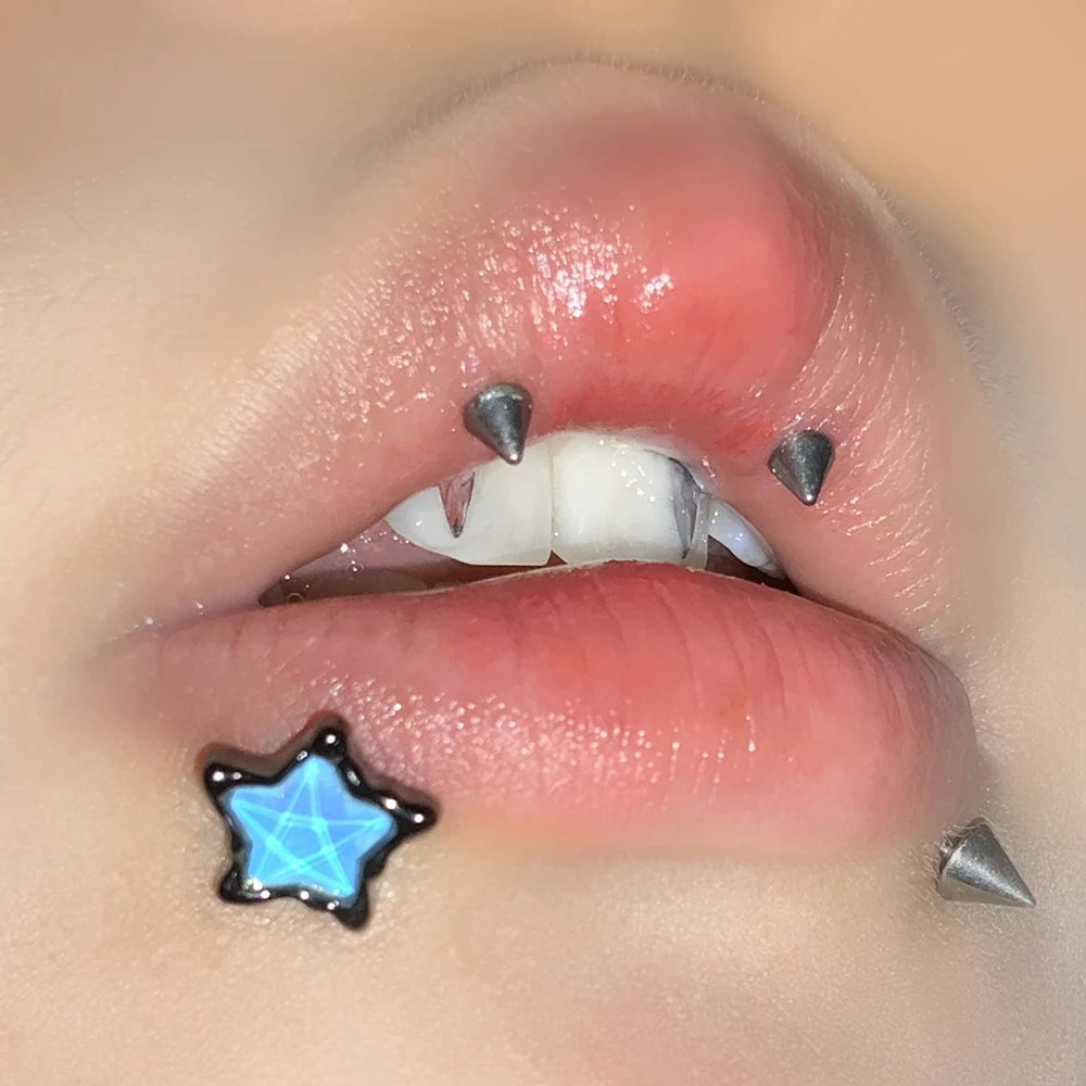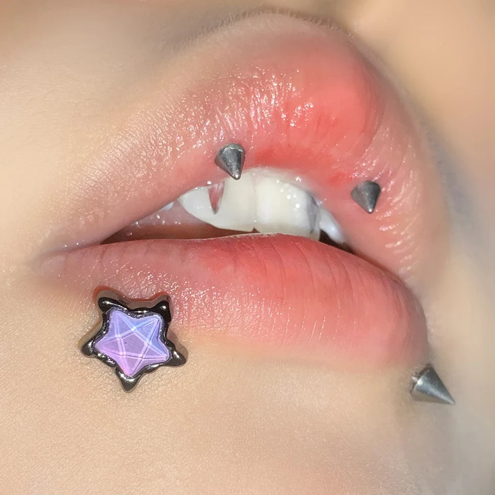 Pentagram Purple Star Stainless Steel Lip Stud