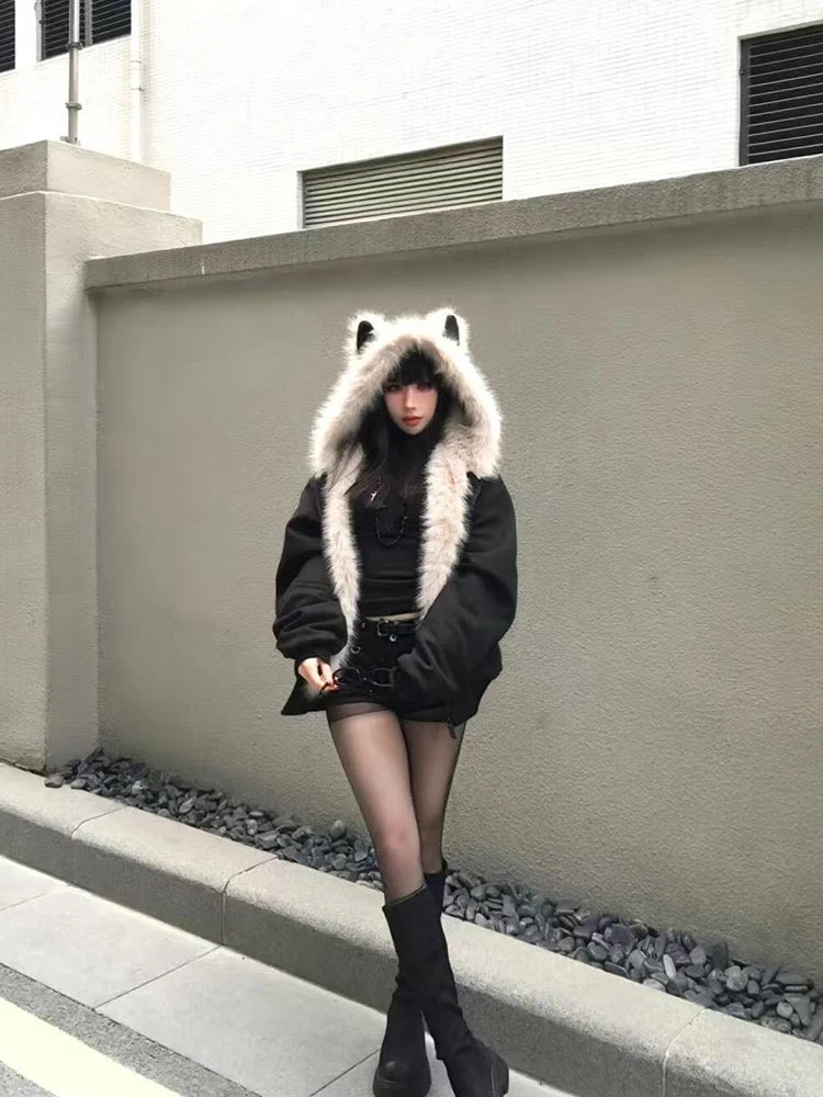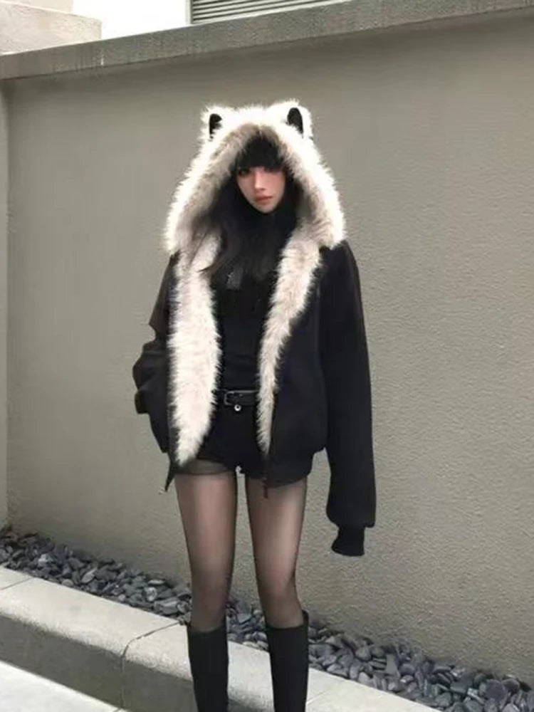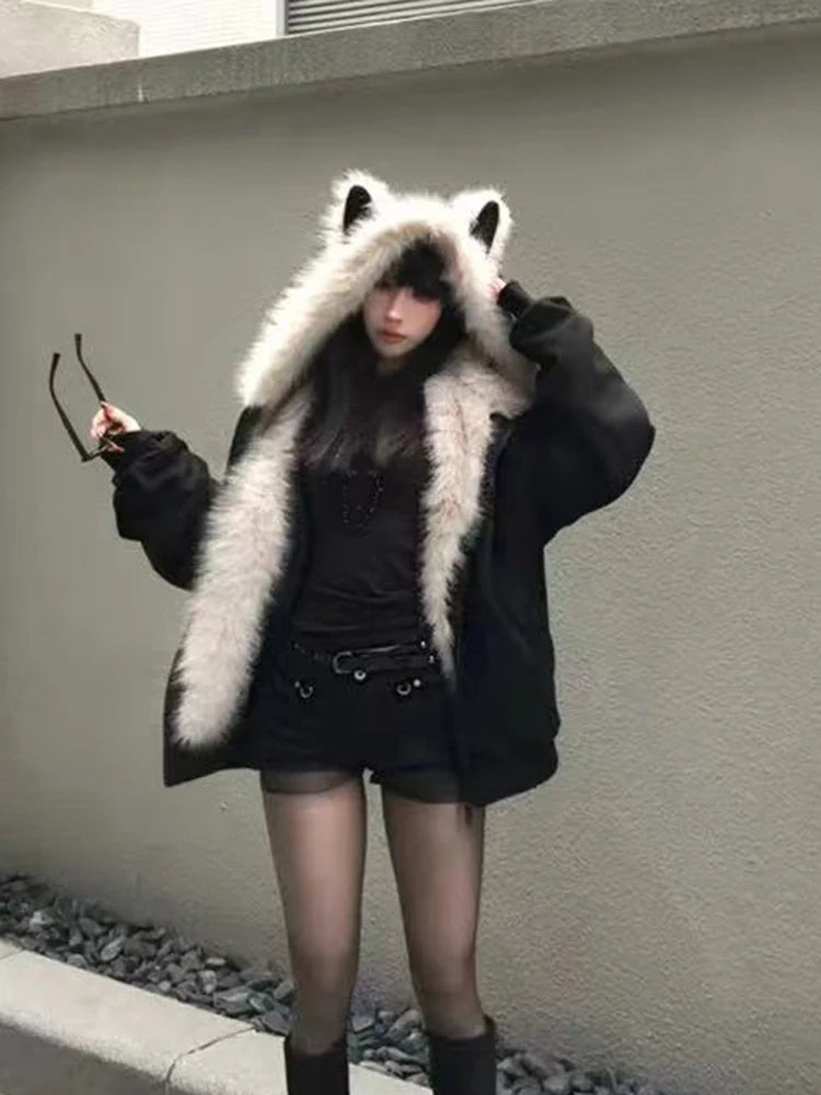 Plush Cat Ear Hooded Coat