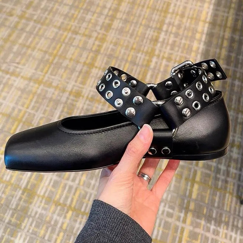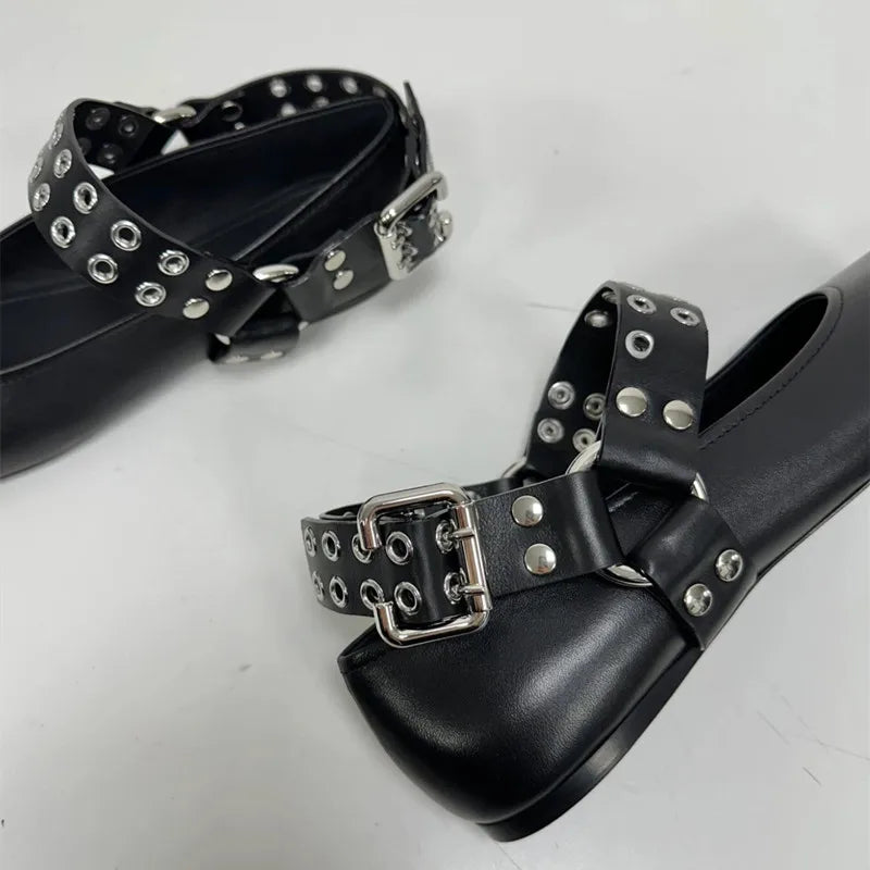 Pointed Toe Chunky Slingbacks Belt Buckle Flat