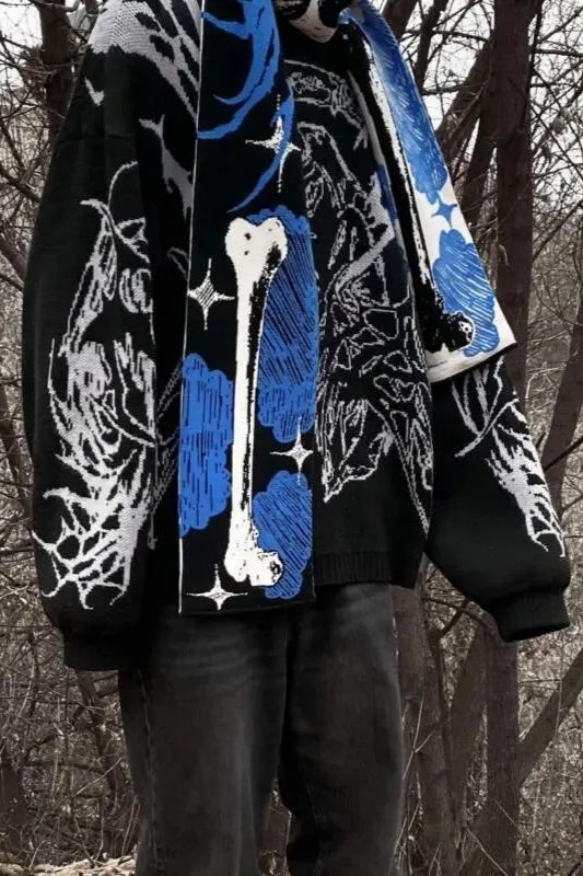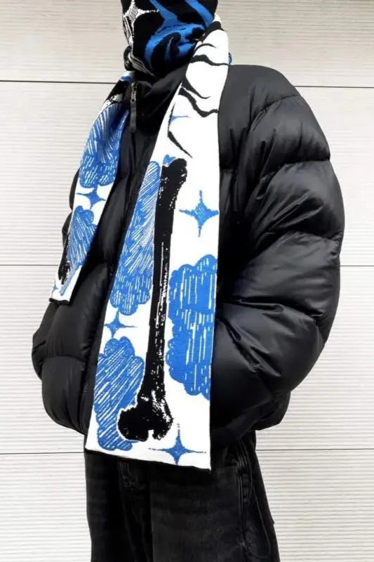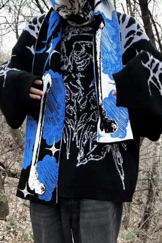 Punk Anime Skeleton Striped Knitted Scarf