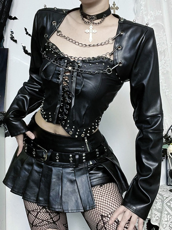 Punk Detachable Chain Leather Jacket