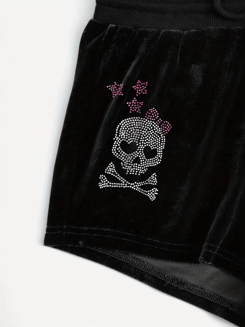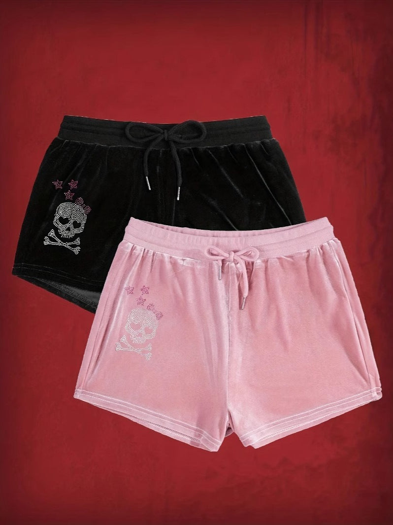 Decrease quantity for Punk Drawstring Rhinestone Printed Shorts