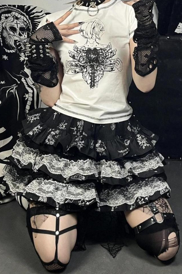 Increase quantity for Punk E-Girl Ruffled Lace Mini Skirt