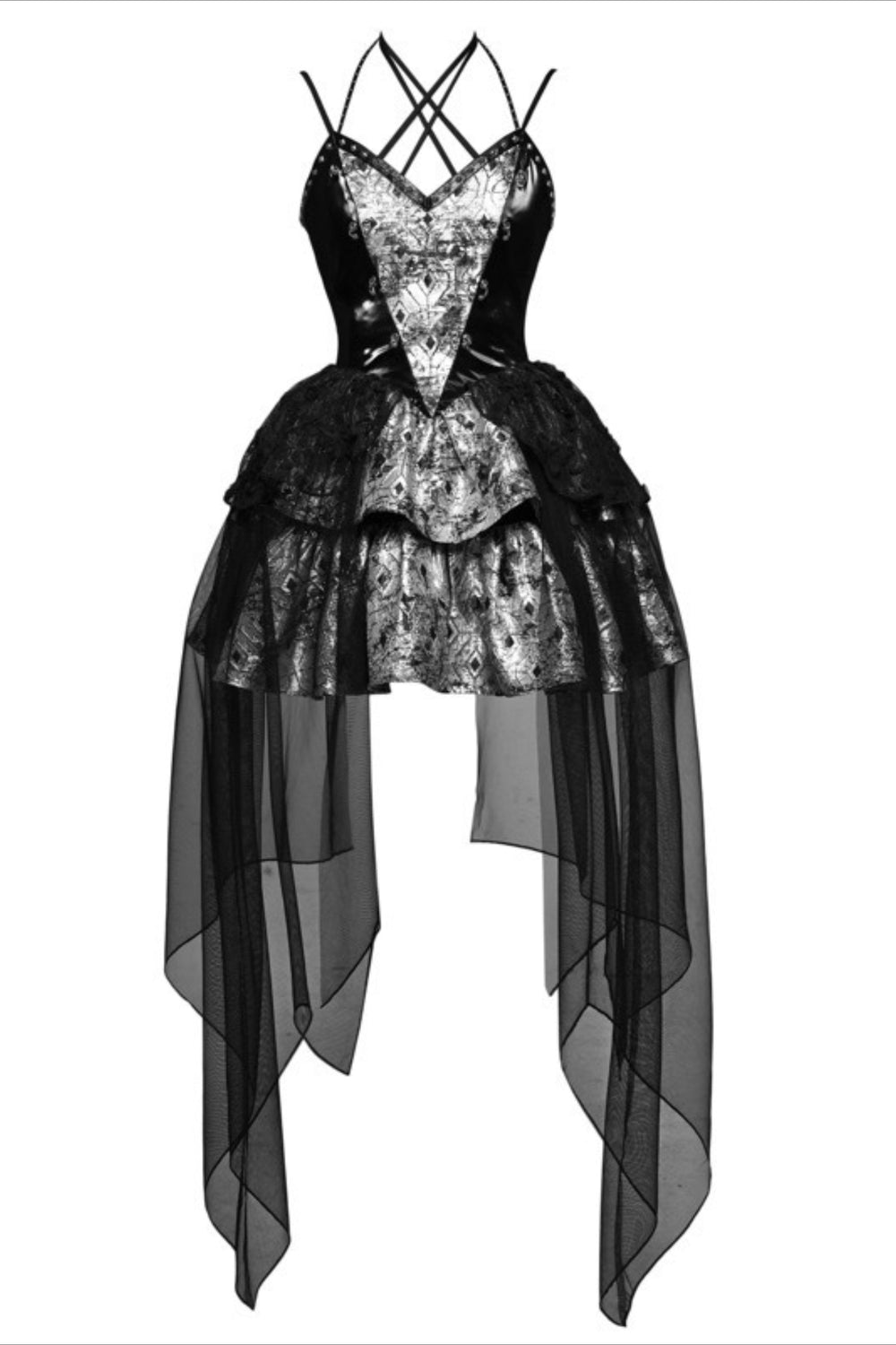 Punk PU Fishnet Mesh Halter Slip Mini Dress