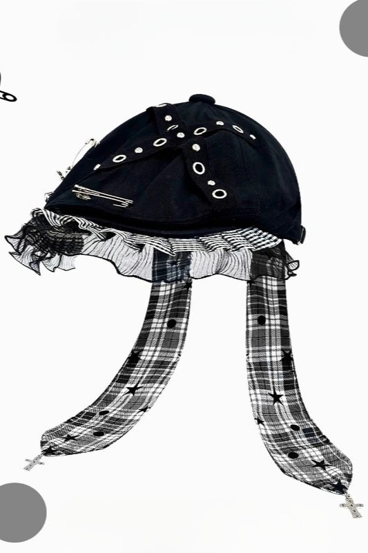 Punk Spice Y2K Lace Long Streamer Beret Hat