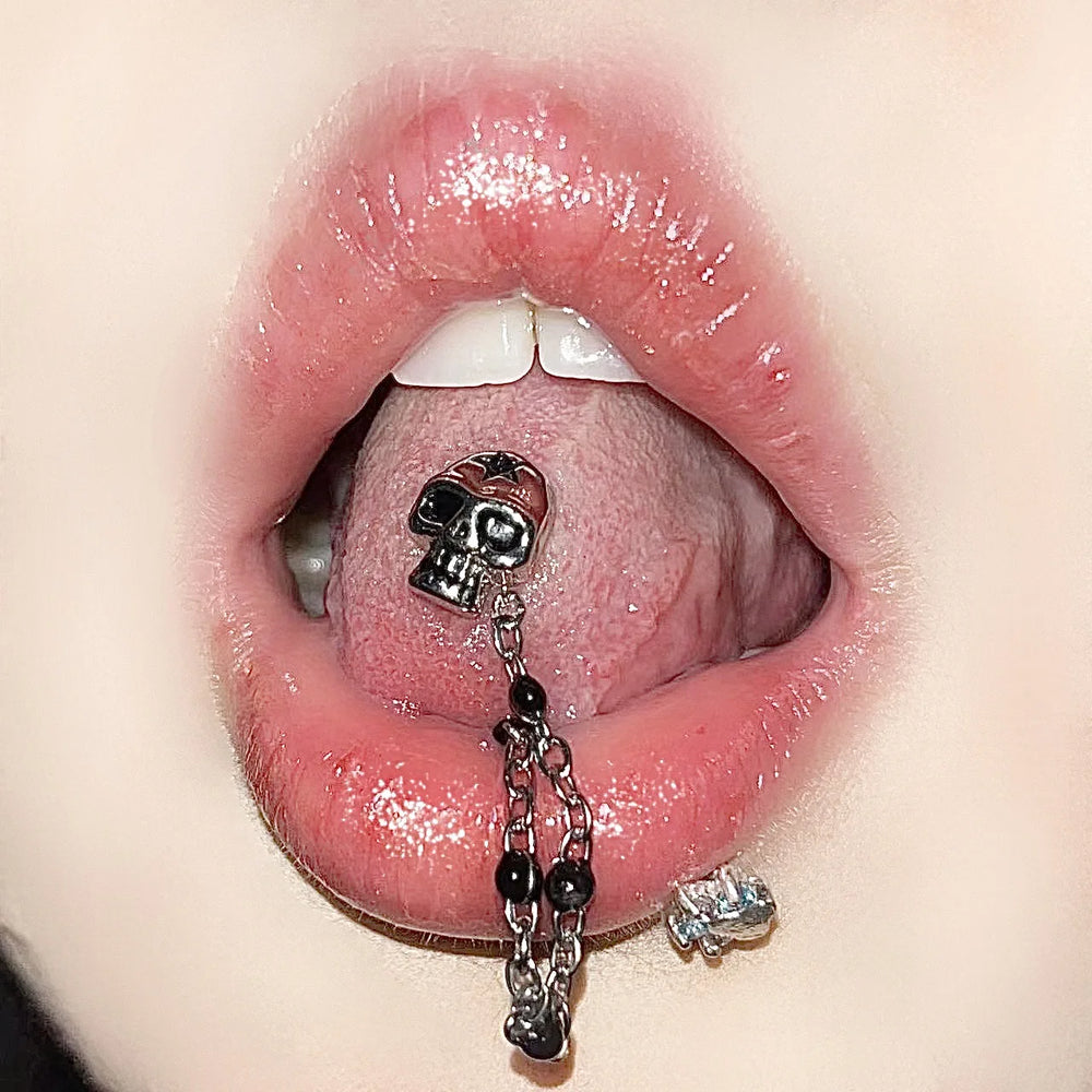 Retro Skull Chains Punk Goth Tongue Ring