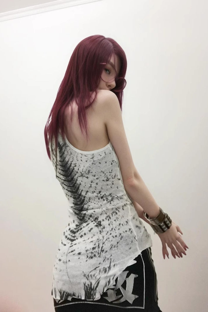 Y2K Vintage Graphic Fake Two-Piece Slim Cami T-shirt