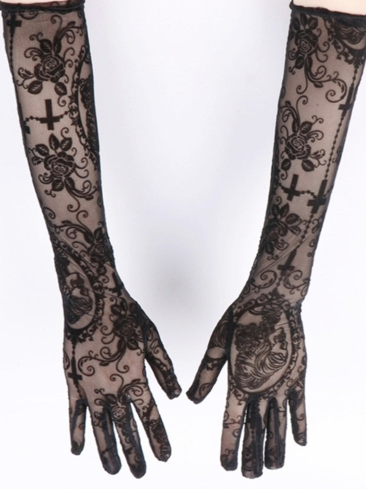 Sexy Lace Long Dark Skull Cross Gloves