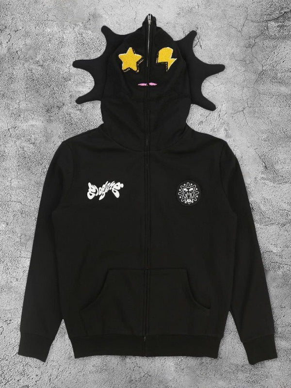 Skull Print Zip-up Long Sleeve Hoodie