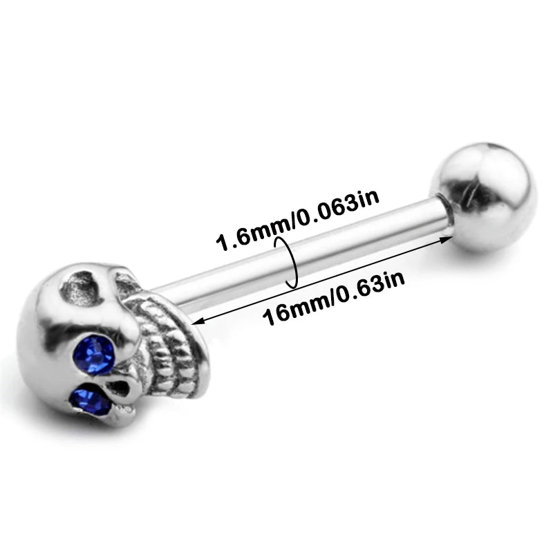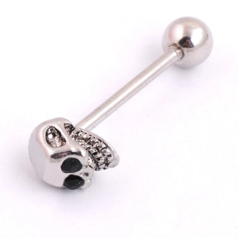 Skull Zircon Stainless Steel Barbell Tongue Ring